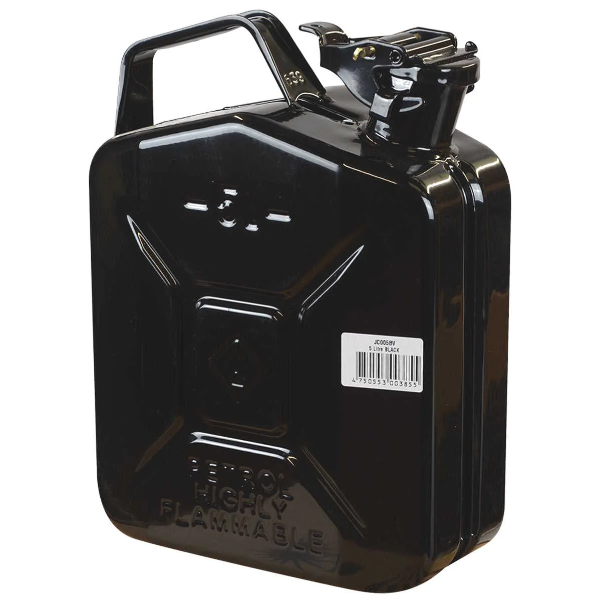 The black 5 litre Wavian NATO Steel Jerry Can is designed for maximum durability to safely store diesel and petrol. An exterior epoxy-polyester coating, interior Rezol coating and wider breather pipe ensures a robust, rustproof, smooth and steady pouring container.